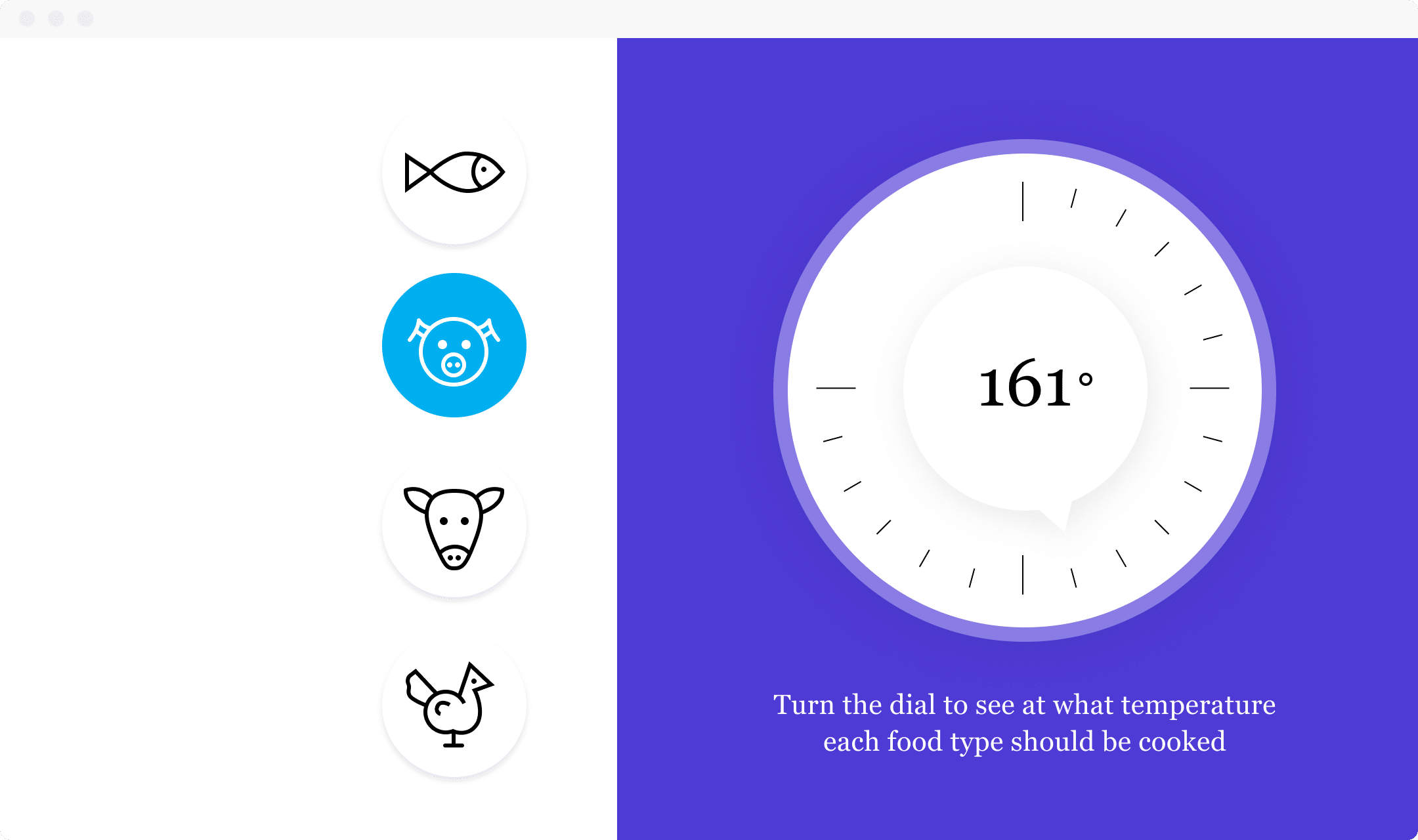 Drop buttons, dials, sliders, markers, and hotspots on your slide to add course interactivity in seconds. With a few clicks, you’ll have an engaging interaction.