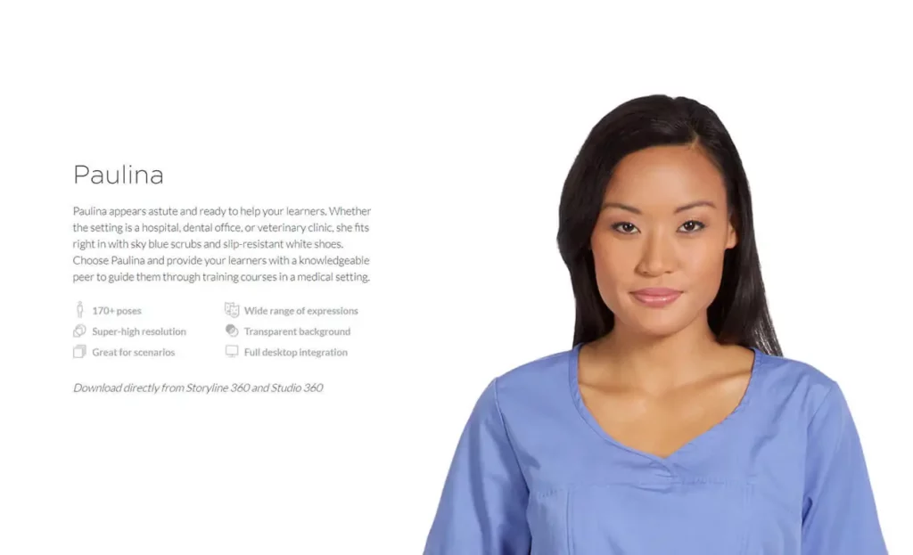 Whether the setting is a hospital, dental office, or veterinary clinic, the new Paulina character fits right in.