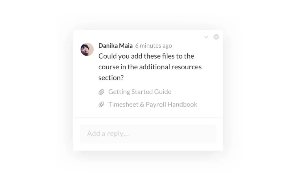 Get on the same page faster. Now your reviewers can attach files, such as screenshots and course assets, to their comments.