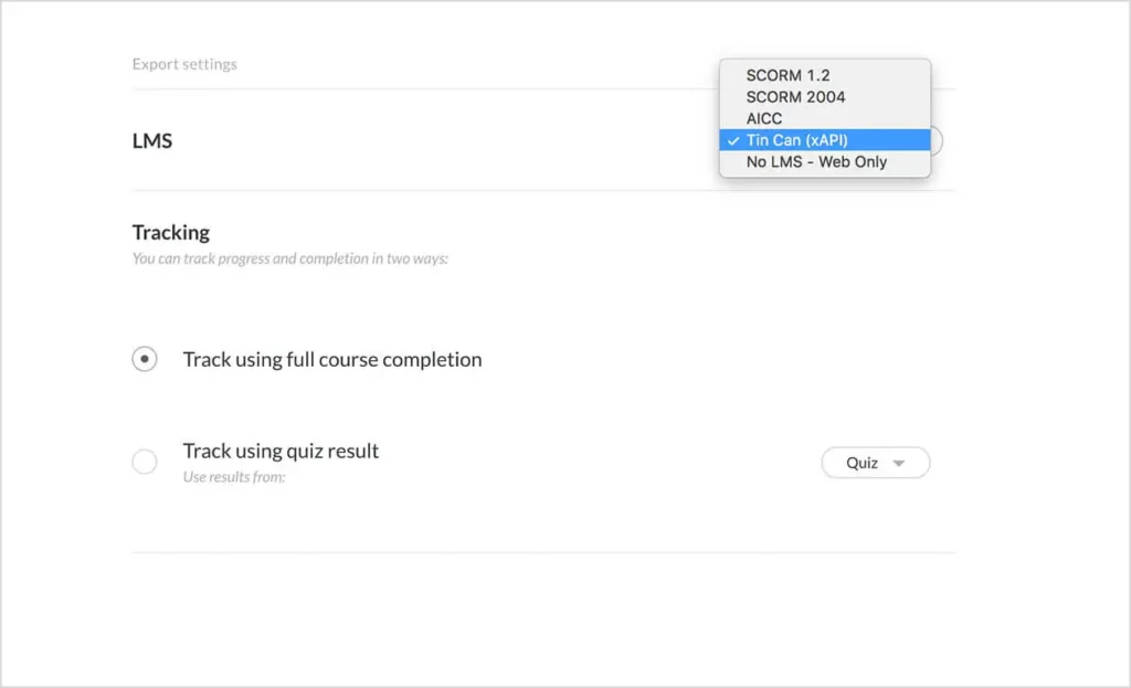 Export Rise 360 courses as Tin Can API-compliant packages that work seamlessly with your LMS.