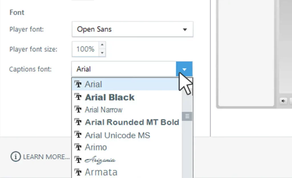 Use custom fonts for your closed captions so they complement the visual design of your course.