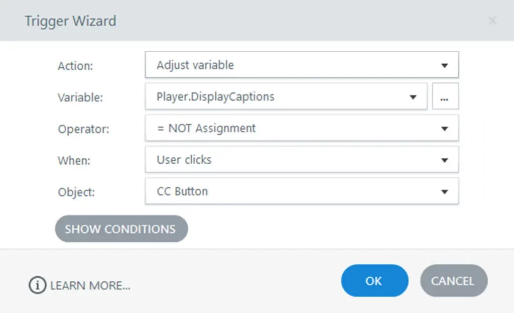 Toggle closed captions on/off with triggers