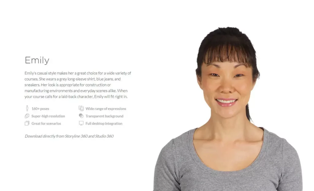 Emily is a laid-back character who’s perfect for many types of courses.