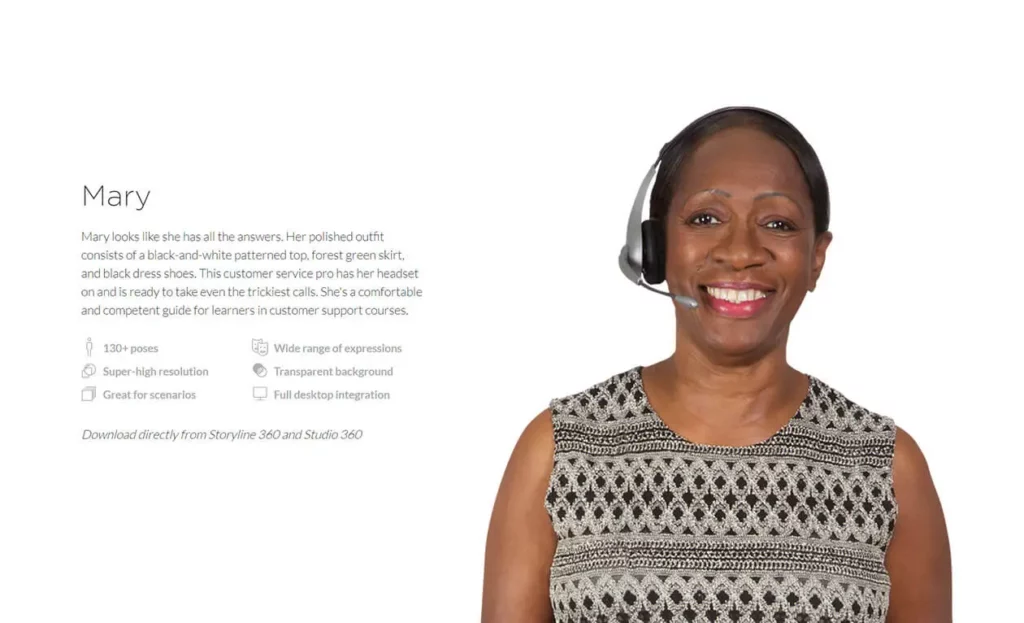 Choose Mary to guide your learners through customer service training.