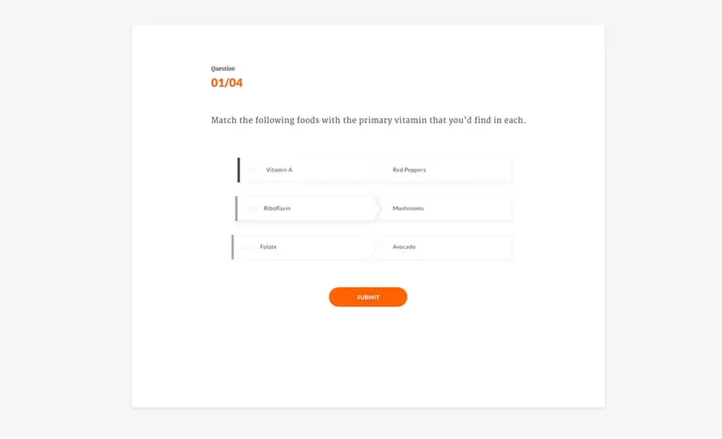 Make assessments interactive with the new drag-and-drop matching quiz question type. For example, match countries to their capitals or chemical elements to their abbreviations.