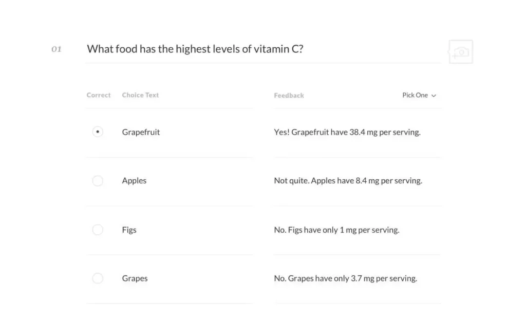 Challenge learners to really understand course content with the new multiple response quiz question type. It lets you add assessments that have more than one correct answer.