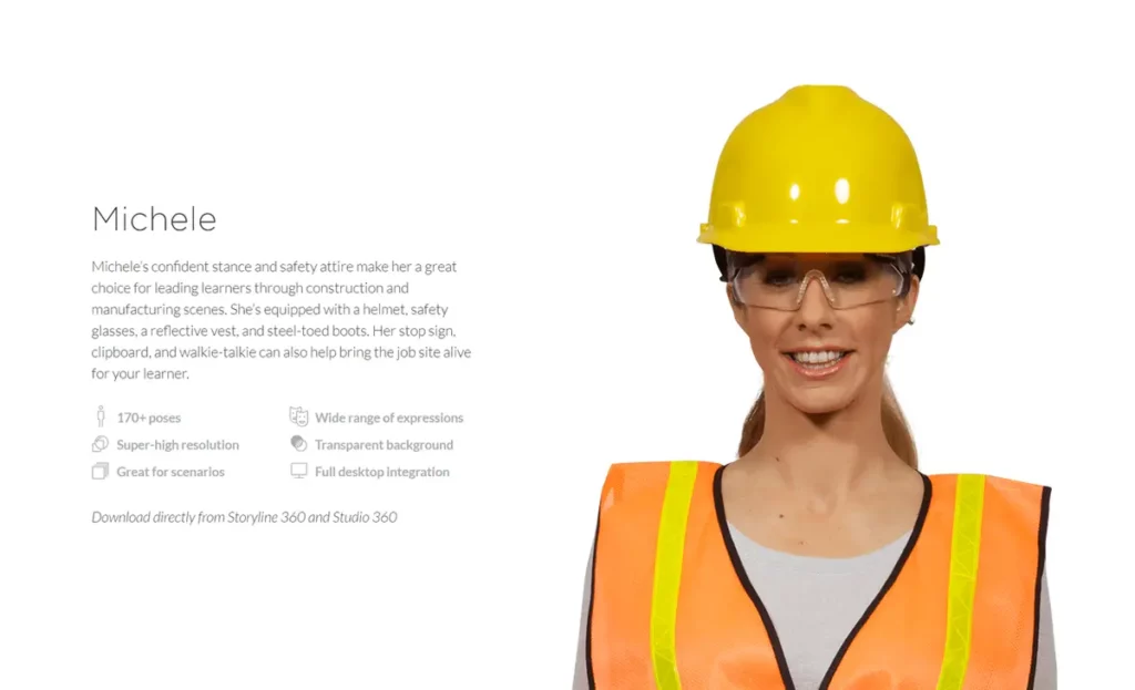 Select Michele when you need to lead learners through training on topics that involve construction job sites and manufacturing.