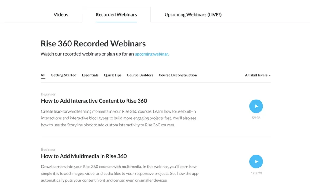 Easily find the training content that’s just right for you. Filter by topic, skill level, app, and upcoming webinars in your time zone.