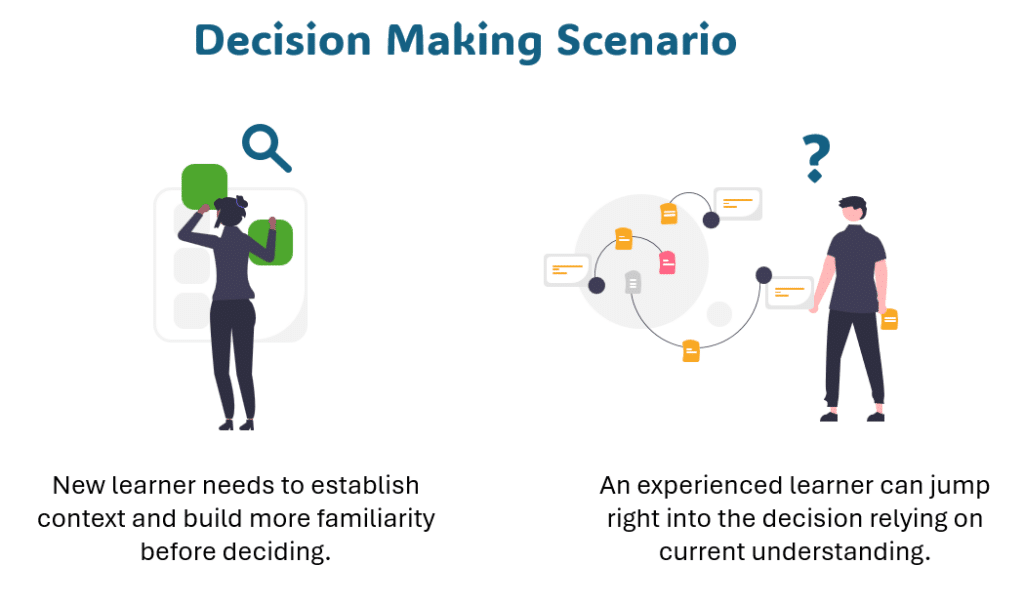Imagine you’re creating an e-learning course where learners need to apply new skills. While you’ll provide content in the course, success hinges on their ability to demonstrate these skills in practice. Your learners likely go from complete novices with little knowledge to seasoned experts who’ll grasp new concepts quickly.