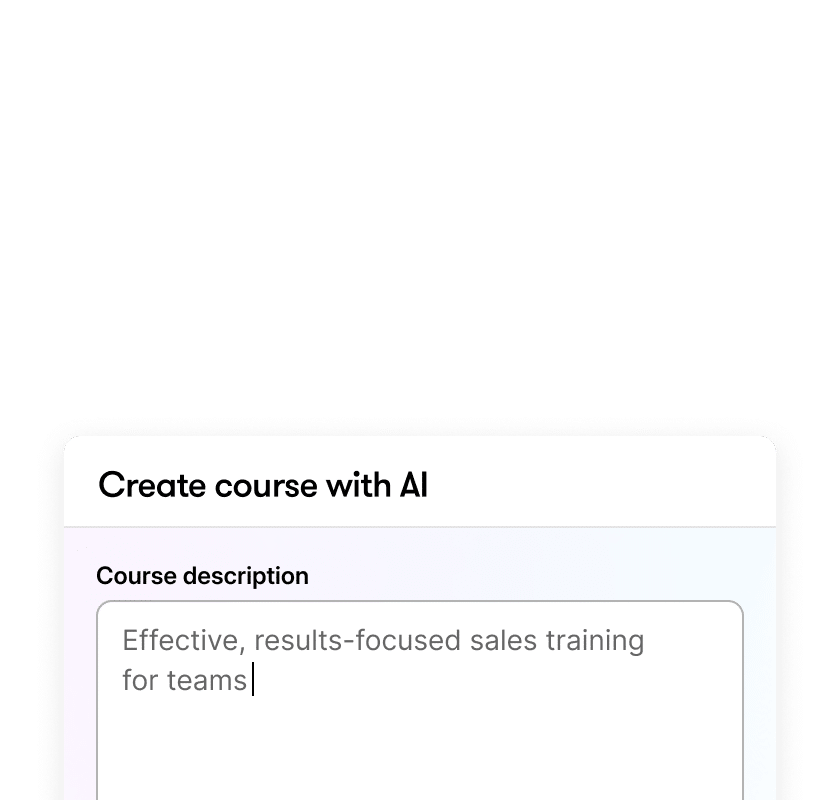 Use AI-powered course creation to develop enablement training that sharpens selling skills, helps teams adapt to new AI tools, and drives revenue growth in the age of AI.