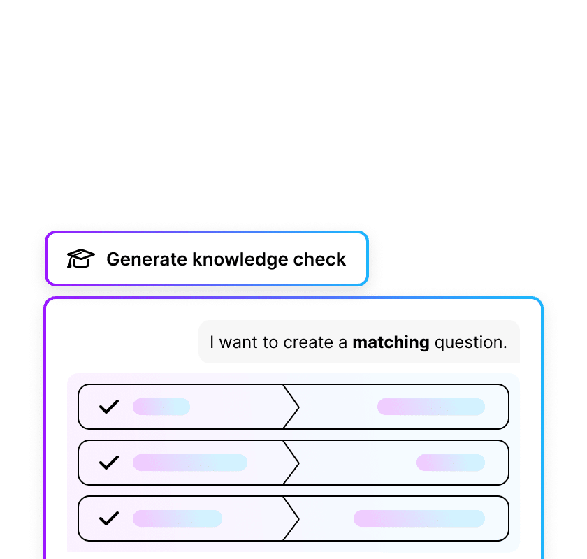 Reinforce learning. Build interactive courses with knowledge checks and quizzes aligned to your goals—at scale.