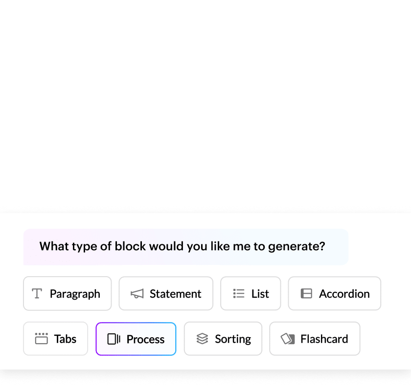 Use AI Assistant to quickly turn source material into training that keeps pace with new sales tech, product launches, and process updates.